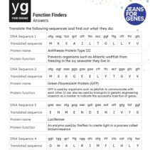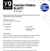 Function Finders: BLAST! introduces learners to an online scientific database used by scientists to store and study proteins. DNA sequence is converted into a string of amino acids that form the functional protein. There are 20 different amino acids and the order and combinations of amino acids that make up a protein determine the protein’s unique function in the body. The human genome contains over 20,000 protein-coding genes.
